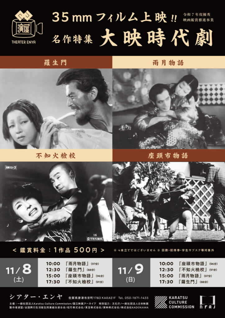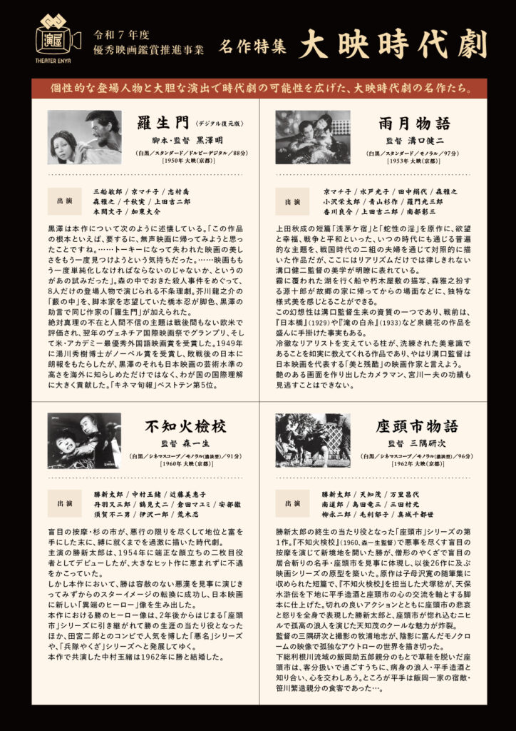35㎜フィルム上映「令和7年度 優秀映画鑑賞推進事業:名作特集 大映時代劇」シアターエンヤで開催